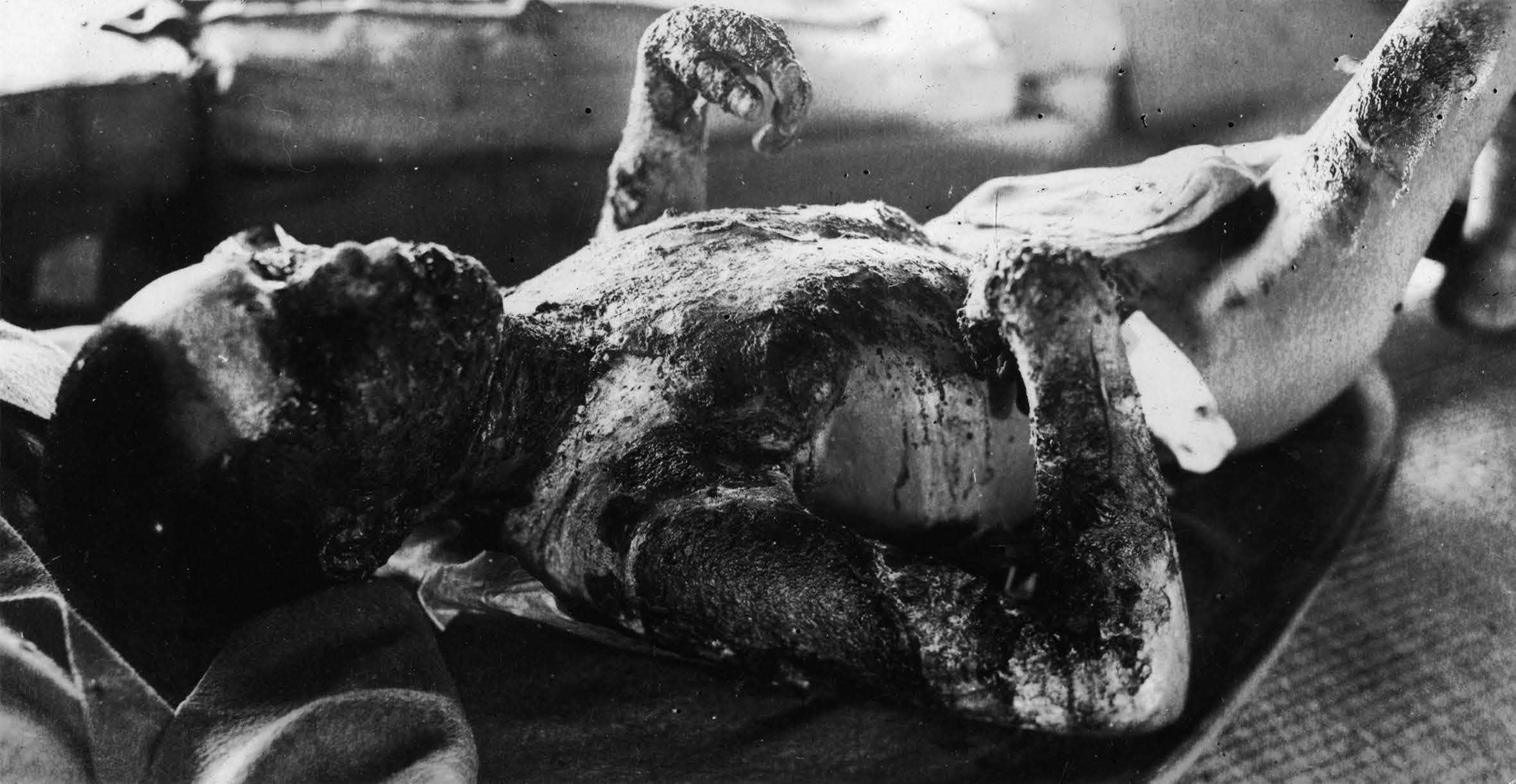 Once the firestorm had gone out, and the smoke had risen, the area around the bomb-site in Hiroshima was no longer earth - it was a foreign, unknown landscape of blackened dust. There was no water to drink, no food to eat, no vegetation, and no shelter. Everything you touched, everything you breathed, was poisonous. A poison that infected you with new conditions and mutations unknown to medicine. If you survived and ventured out from whatever shelter you might have found, all around you would find thousands upon thousands of bodies. Bodies of the dead, the dying, and the suffering. The air itself was not of earth. It was littered with molecules and mineral structures, forged in the explosion, which had never previously existed. Because this was not earth as it had been known. It was a version of hell ripped open from a parallel dimension - more horrific than many would attempt to try and imagine. The reality that existed before was gone and replaced. For those that were instantly vaporised it was a blessing. The "bomb" - the explosion and the mushroom cloud - was the rapture - because what followed was a reality from a mythological dimension filled with horror beyond imagination.